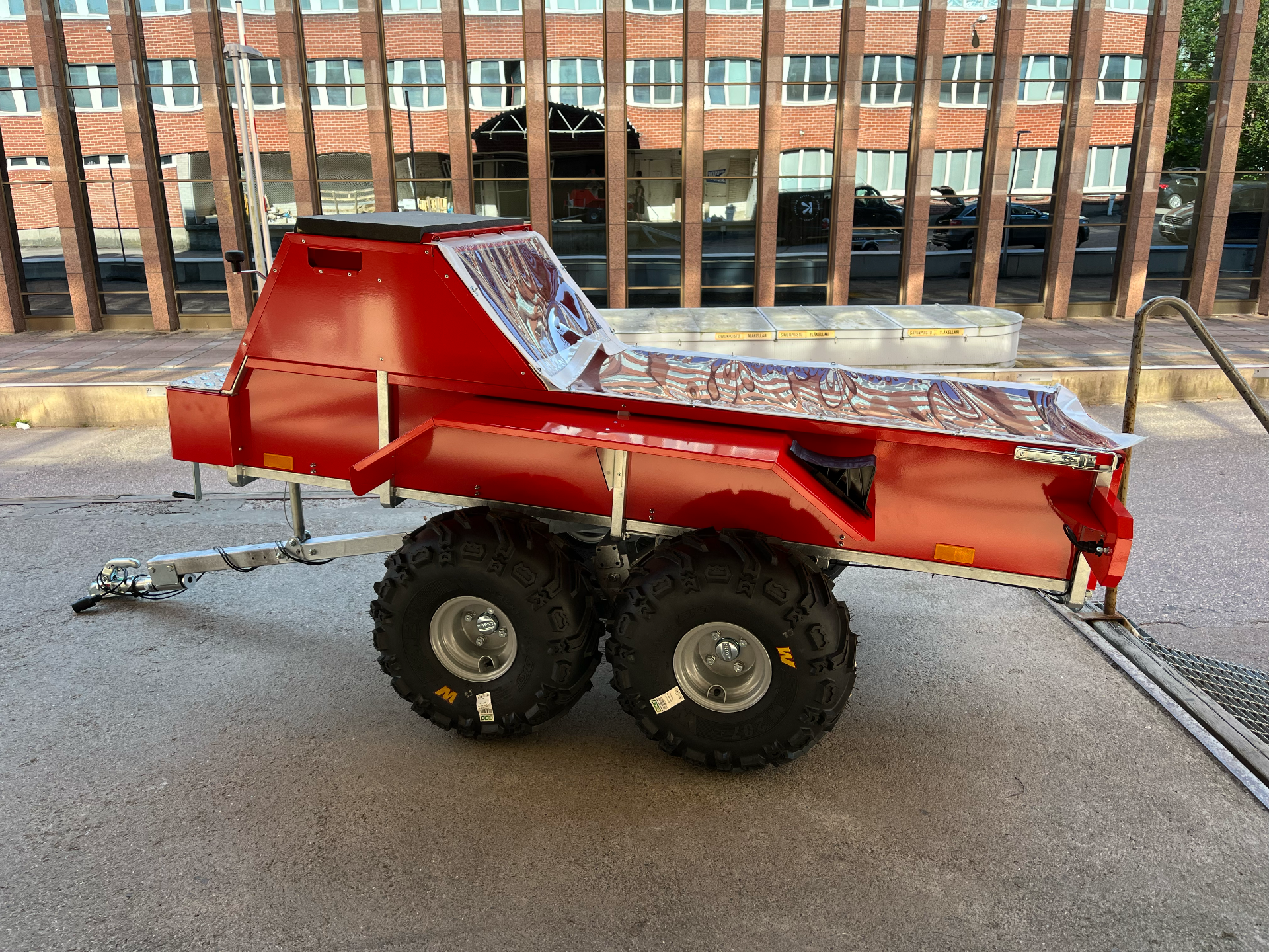 Alusta yhdistetään erittäin kestävään tandem-kävelypalkki akselijärjestelmään, joka on viimeistelty ATV:n pyörillä/renkailla.